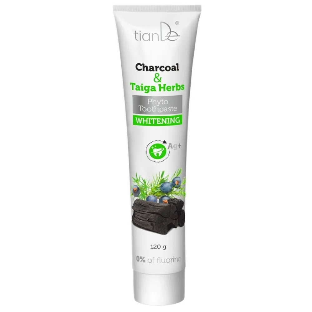 Balinamoji augalinė dantų pasta su anglimi ir taigos žolelėmis turi turtingą juodą spalvą, o jos reguliarus naudojimas padės atkurti natūralų dantų atspalvį.