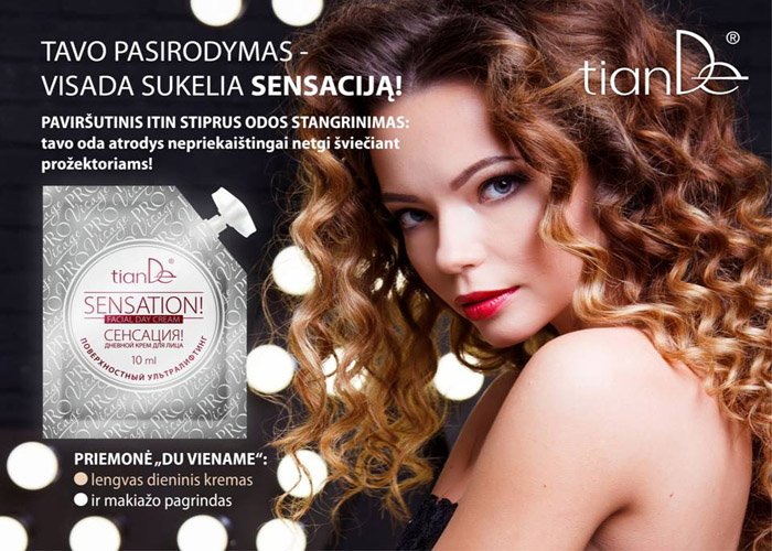 Grožį ir jaunystę išsaugosi su kremu “Sensation”, kurio naudojimas yra lengvas ir malonus,o poveikis akivaizdus po pirmo karto.Kremas suteikia ultratempimo efektą ir pastebimas akivaizdus rezultatas probleminėse zonose.Jis gali vizualiai išlyginti mažytes raukšleles,o gilios tampa mažiau pastebimos. “Sensacija” – tai priemonė “2 in 1”. Kremas puikiai atlieka dieninės koreguojančios priemonės su liftingo efektu vaidmenį.Tai nepakartojamas pagrindas makiažui. Kremo sudėtyje: