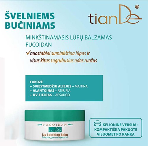 Gydomoji vandenyno galia Jūsų lūpų švelnumui!Be parabenų ir mineralinių aliejų!Lūpas puoselėjantis balzamas drėkina ir minkština, apsaugo nuo šalčio ir neigiamo aplinkos poveikio, ilgiau išlaiko drėgmę. Natūralūs ir ypatingi gamtiniai drėkikliai padengia lūpas natūralia apsaugine plėvele, kuri”užrakina” drėgmę ir neleidžia jai išgaruoti. Daugiau jokių paraudusių ar šerpetojančių lūpų šaltuoju periodu ir suskilinėjusių bei išsausėjusių šiltomis saulėtomis dienomis! Apsaugą nuo aplinkos poveikio sustiprina balzamo sudėtyje esantis filtras nuo UV spindulių!